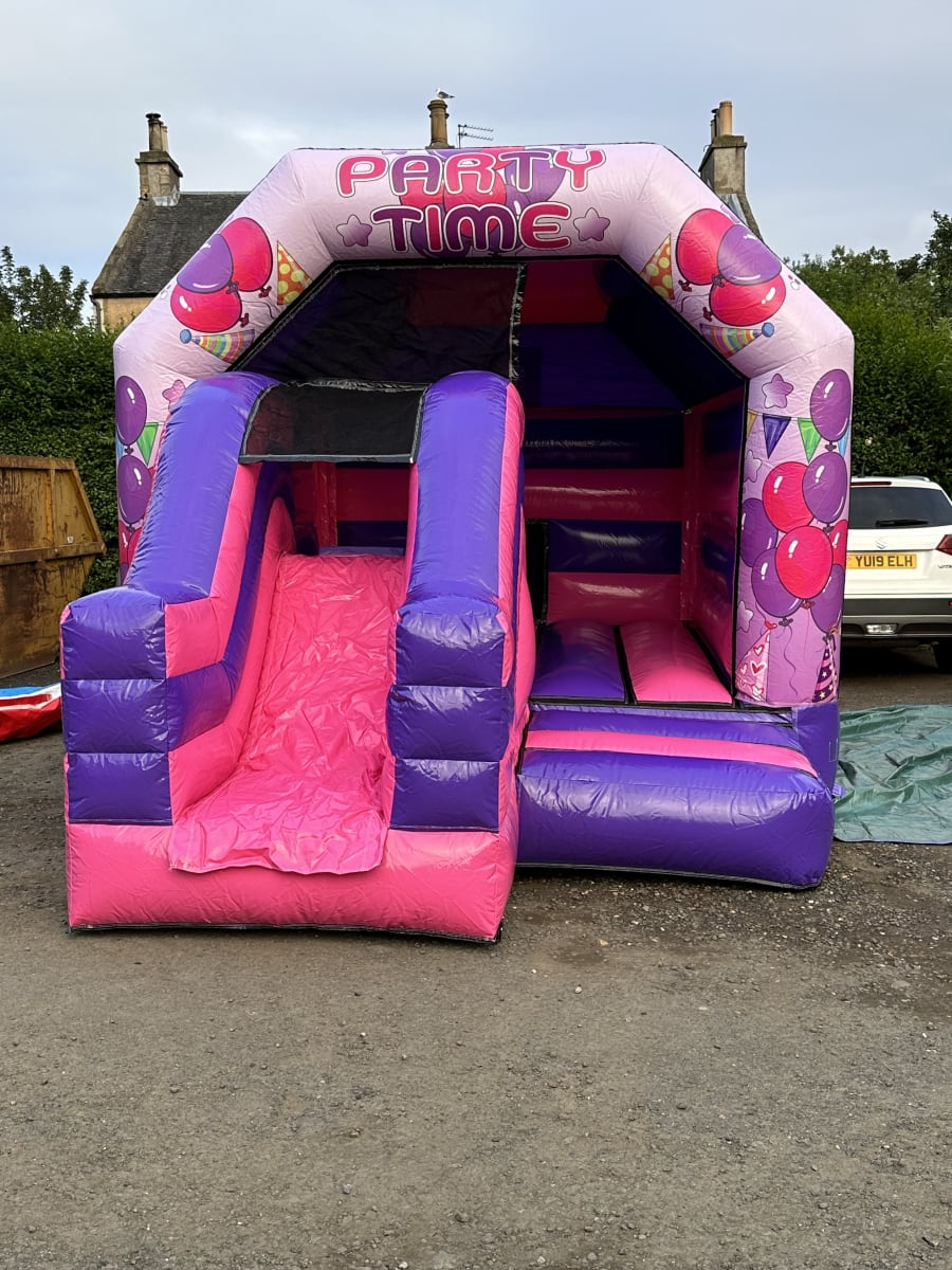 Get ready to party with our Pink & Purple Party Time Disco Front Combo Bouncy Castle! This vibrant and exciting bouncy castle is the perfect addition to any little girl's birthday celebration. Whether you're hosting the party at a community center or in your own garden, this bouncy castle is sure to provide hours of fun and entertainment.