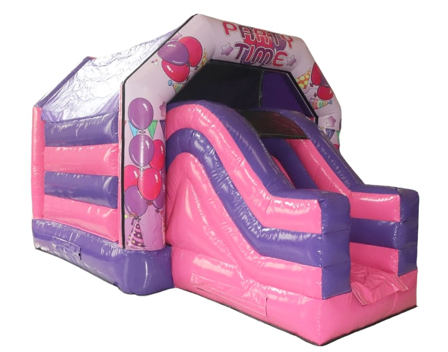 Pink & Purple Party Time Disco Front Combo Bouncy Castle
