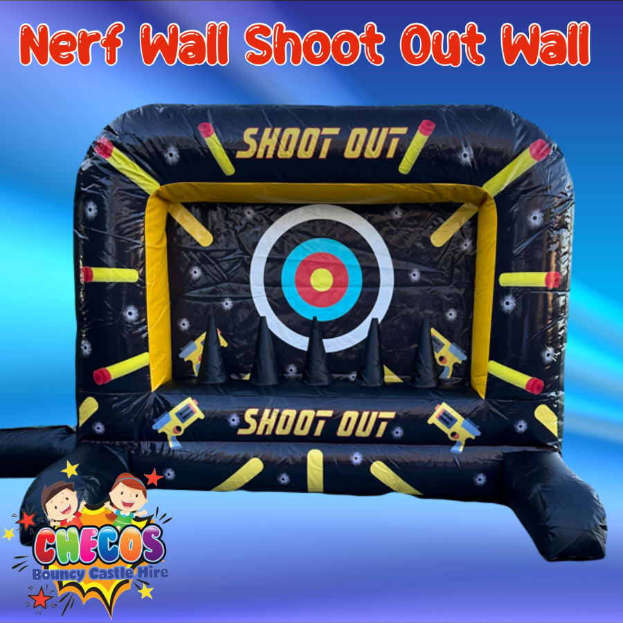 Introducing the Nerf Shoot Out Wall, the ultimate add-on for your bouncy castle experience! This innovative inflatable nerf wall takes your nerf battles to new heights of excitement and challenge. 🎯