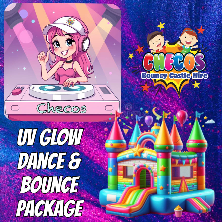 Get ready to light up the party with our 2 Kids Hour UV Glow Disco Package with Tik TOK Combo Bouncy Castle! This exciting package combines the thrill of a UV Glow Party with the joy of bouncing on a bouncy castle. Perfect for kids of all ages, this package is sure to create a memorable and fun-filled experience.