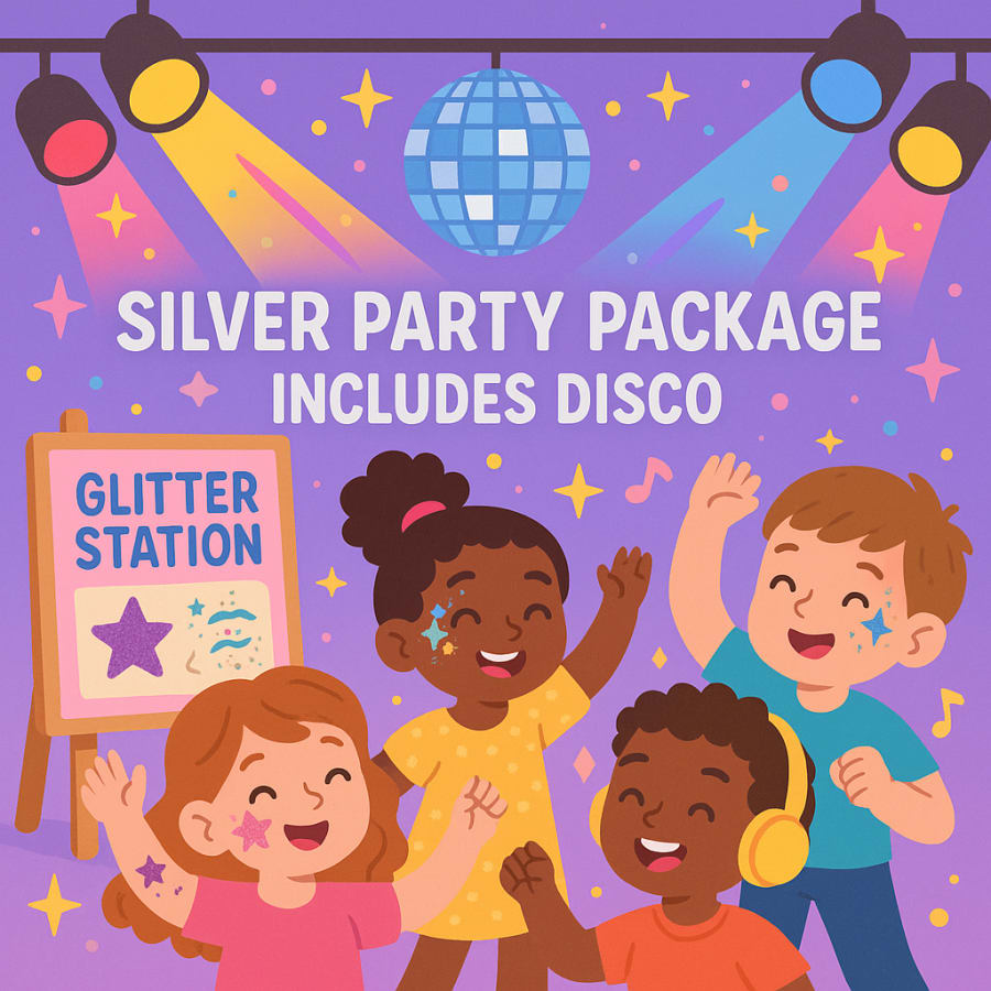Get a high-energy, sparkle-filled celebration for ages 3–10. The Silver Party Package blends music, games and glitter. It's perfect for a vibrant kids birthday party or a lively girls or boys party. Expect safe fun, expert hosting and memorable moments. ✨